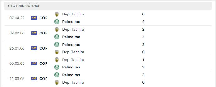 Thành tích đối đầu Palmeiras vs Deportivo Tachira