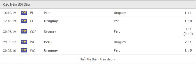 Lịch sử đối đầu Peru vs Uruguay