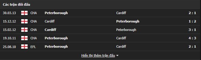 Thành tích đối đầu Peterborough vs Cardiff: