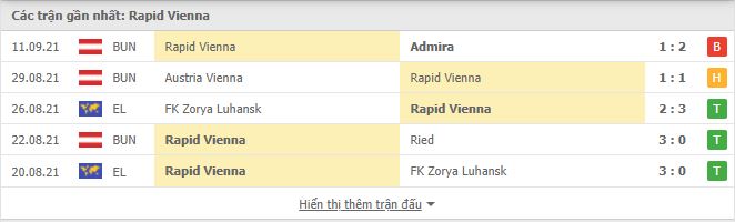 Thống kê phong độ gần đây Rapid Vienna vs Genk