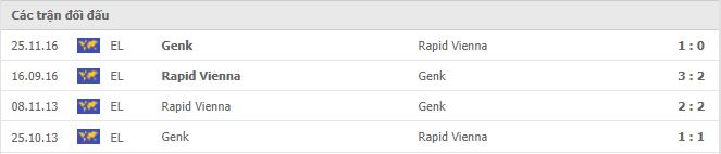 Lịch sử nói lên đây là cặp đấu giữa một bên tám lạng và một kẻ nửa cân. Thống kê trong quá khứ cho thấy Rapid Vienna và KRC Genk đã gặp nhau 4 lần, tất cả đều trong khuôn khổ UEFA Europa League và cán cân đang ở mức cân bằng tuyệt đối với mỗi đội có 1 chiến thắng cùng 2 lần khép lại với kịch bản bất phân thắng bại. Đáng chú ý ở những lần so tài trước đây giữa hai đội, đội chiến thắng đều là đội có tư cách chủ nhà.