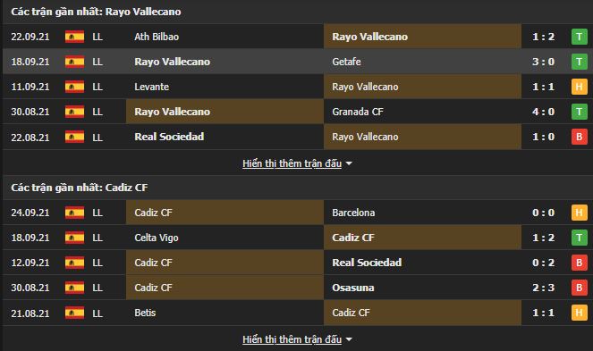 Phong độ gần đây Rayo Vallecano vs Cadiz: