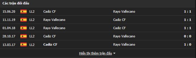 Thành tích đối đầu Rayo Vallecano vs Cadiz: