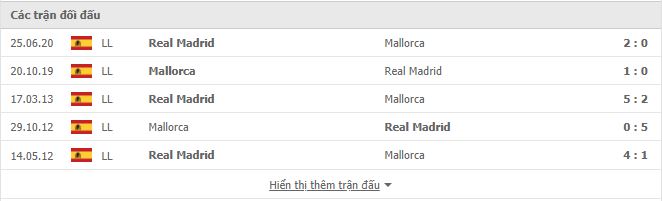 Thành tích đối đầu Real Madrid vs Mallorca
