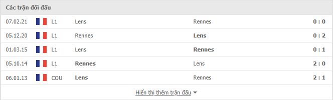 Thành tích đối đầu Rennes vs Lens