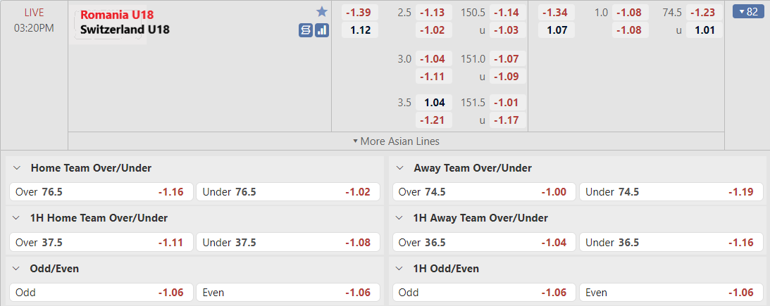 Bảng tỷ lệ kèo Romania U18 vs Switzerland U18