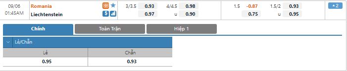 Bảng tỷ lệ kèo trực tuyến trận đấu Romania vs Liechtenstein:
