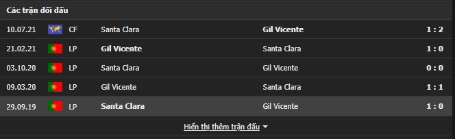 Thành tích đối đầu Santa Clara vs GIL Vicente: