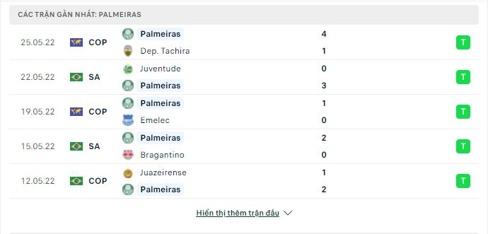 - Phong độ Palmeiras