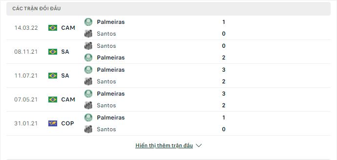 Thành tích đối đầu Santos vs Palmeiras