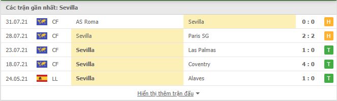 Thống kê phong độ gần đây Sevilla vs Rayo Vallecano