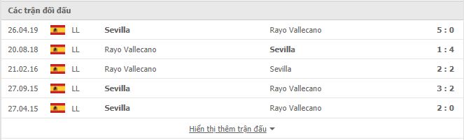 Thành tích đối đầu Sevilla vs Rayo Vallecano