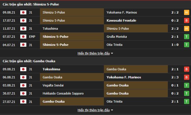 Phong độ gần đây Shimizu S-pulse vs Gamba Osaka: