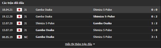 Thành tích đối đầu Shimizu S-pulse vs Gamba Osaka: