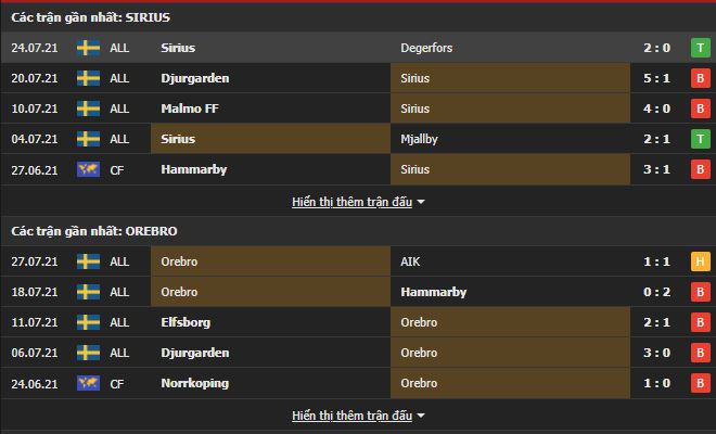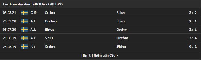 Lịch sử đối đầu trong quá khứ đang nghiêng về phía các cầu thủ Orebro. Cụ thể, sau 15 lần gặp nhau giữa 2 đội, Orebro đang sở hữu 7 chiến thắng, để thua 5 lần và có 3 lần 2 đội bất phân thắng bại. Nhưng với phong độ hiện tại và sức mạnh đội hình vượt trội, Sirius sẽ giành chiến thắng. Kèo châu Á chủ nhà chấp 1/2 và tài xỉu 2.5/3, chọn đội chủ nhà và tài đặt kèo hợp lý hơn cả ở trận đấu này.