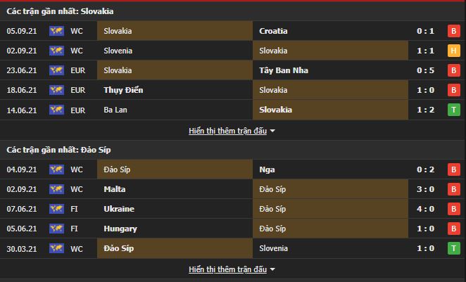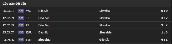 Thành tích đối đầu Slovakia vs Đảo Síp: