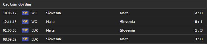 Thành tích đối đầu Slovenia vs Malta: