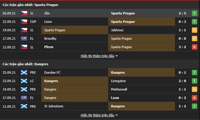 - Dự đoán tỉ số hiệp 1: Sparta Praha 0-0 Rangers