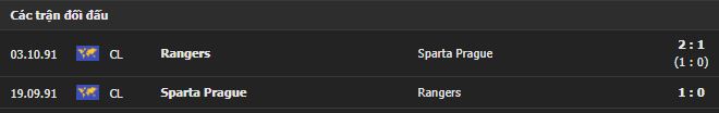 Thành tích đối đầu Sparta Praha vs Rangers: