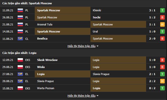 - Dự đoán tỉ số hiệp 1: Spartak Moscow 1-0 Legia Warszawa