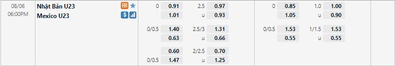 Bảng tỷ lệ kèo trực tuyến trận đấu U23 Nhật Bản vs U23 Mexico