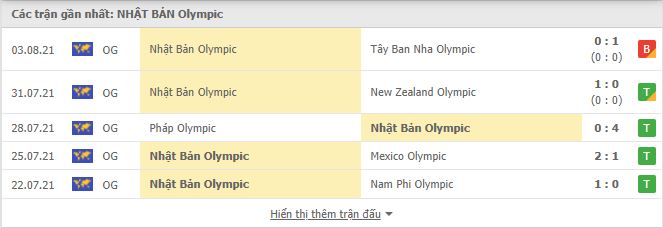 Thống kê phong độ gần đây U23 Nhật Bản vs U23 Mexico