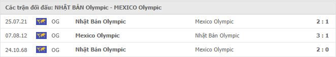 Thành tích đối đầu U23 Nhật Bản vs U23 Mexico