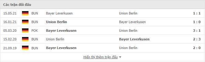 Lịch sử đối đầu Union Berlin vs Bayer Leverkusen