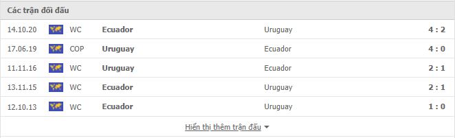 Thành tích đối đầu Uruguay vs Ecuador