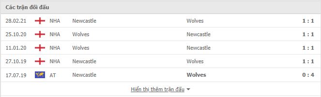 Thống kê phong độ gần đây Wolves vs Newcastle