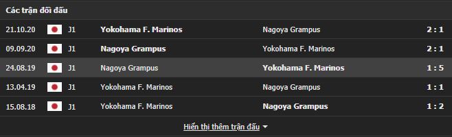 Thành tích đối đầu Yokohama F. Marinos vs Nagoya Grampus: