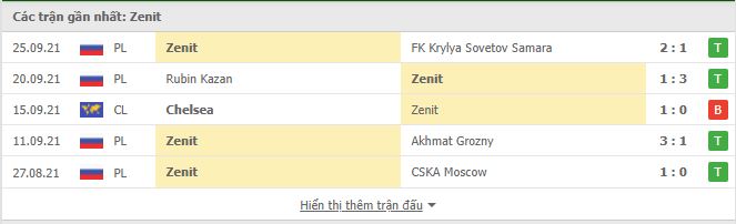 - Phong độ Zenit Saint Petersburg