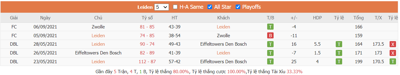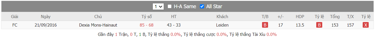 Thống kê cho thấy đây cứ trung bình mỗi trận sau tổng số 10 trận ra sân gần nhất Belfius Mons-Hainaut cũng đều duy trì được sự phòng khoáng trong lối chơi khi mà trên hàng công đã ghi được trung bình tới 85 điểm mỗi trận và cũng đã để đối thủ bỏ vào rổ nhà trung bình tới 83 điểm mỗi. Từ đó dẫn tới 6 trên 10 trận đấu kể trên đều đã khép lại với các kết quả chung cuộc nổ tài. Vậy nên khả năng bùng nổ tỷ số ở trận tới cũng rất đáng được kỳ vọng khi mà cũng đã tới 7 trên 10 trận ra sân gần nhất của Zorg en Zekerheid Leiden cũng đều đã vượt qua mức kèo niêm yết theo TLCA. Đồng thời Zorg en Zekerheid Leiden cũng đã ghi được trung bình tới 87 điểm mỗi trận sau tổng số 10 trận ra sân gần nhất.