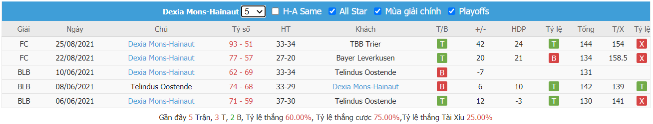 - Phong độ Belfius Mons-Hainaut